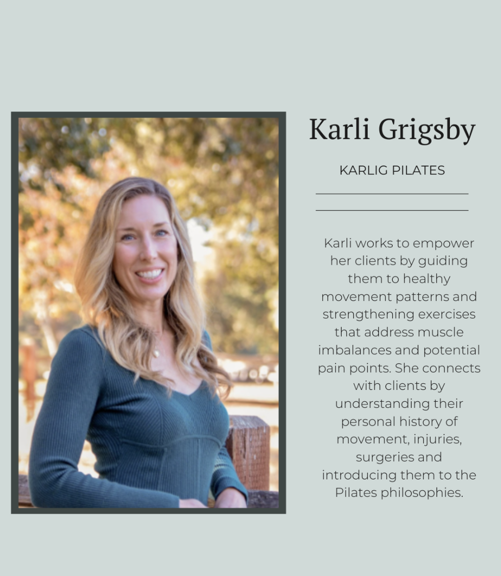 Whether you're working through an injury or just looking to feel stronger in your body, Karli offers personalized sessions designed to meet you where you are. Book a private, duet, or group class Monday through Friday and start your Pilates journey today.